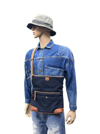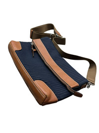Takeo Kikuchi Made in Japan mature-style sling bag featuring a navy blue yarn-dyed pinstripe canvas body. Triple Zipper Access: This unique design features three zippers for convenient access to the main compartment-one on the top and one on each side-allowing you to reach your items quickly from any angle • Versatile Sizing: • Expanded: Fits vertical A4-sized documents and tablets perfectly. • Folded: The top portion can be folded down and secured with a magnetic closure to transform it into a more compact, stylish crossbody bag • Premium Materials: Crafted from durable, water-repellent navy pinstripe canvas with high-quality brown embossed leather trim and YKK hardware • Interior: Fully lined in a rich burgundy polyester with additional organizer pockets • Adjustable shoulder strap Condition: Good used. No major flaws Shipping & Returns: • Ships worldwide via FedEx/DHL Express (ETA 5-8 business days from Asia) • Buyer responsible for customs/ import fees (if any) • No returns - review all photos & description carefully ありがとうございました(Thank You) ~ rOAdRunNeR cOlleCtioN ~
