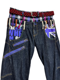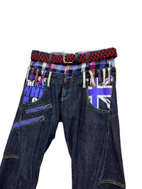 FYE🔥PUNK UNION JACK Double Waist Bondage Zipper Twisted Leg ➤ BRAND NAME : NYLAUS CONDITION : (USED : 8/10) MATERIAL : Denim ......…................................................................ ➤ SIZE MANUAL MEASUREMENT / LAID FLAT (INCHES) WAIST : 15“(W30") LENGTH ; *Outseam : 41" *Inseam : 31" .......….............................................................. ➤✈️WORLDWIDE EXPRESS SHIPPING ✈️ DHL / FedEx (ETA) 5~8 Days Worldwide (From Asia) ありがとうございました(Thank You) ~ rOAdRunNeR cOlleCtioN ~