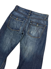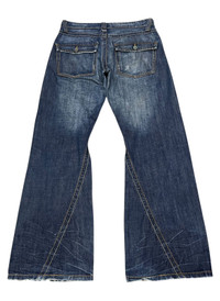 Authentic vintage Mossimo jeans with an extreme super flare cut. Classic mid-wash denim with unique angled panel stitching and wide leg silhouette. Y2K streetwear or early 2000s grunge aesthetic. Button flap back pockets. Used with natural fading and wear at hems. Rare find. 💥Perfect for standout fits or archive collectors. ➤✈️WORLDWIDE EXPRESS SHIPPING ✈️ The Items Will Be Shipped From Asia Via DHL / FedEx (ETA) 5~8 Days Worldwide ありがとうございました(Thank You) ~ rOAdRunNeR cOlleCtioN ~