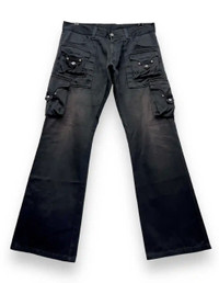 Vintage TORNADO MART Rusty Black Bush Cargo Minimalist Flare ➤ BRAND NAME : TORNADO MART MADE IN JAPAN CONDITION : (USED : 8/10) MATERIAL : Cotton ......…................................................................ ➤ SIZE MANUAL MEASUREMENT / LAID FLAT (INCHES) WAIST : 16“(W32") (SIZE ON TAG : LL) LENGTH ; *Outseam : 38" *Inseam : 30" .......….............................................................. ➤✈️WORLDWIDE EXPRESS SHIPPING ✈️ DHL / FedEx (ETA) 5~8 Days Worldwide (From Asia) ありがとうございました(Thank You) ~ rOAdRunNeR cOlleCtioN ~