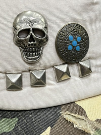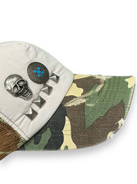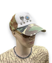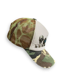 FYE🔥Vtg Studded Skull Distressed Army Camouflage Trucker Hat ➤ BRAND NAME : Vintage Japanese Brand CONDITION : (USED : 8/10) MATERIAL : Polyester, Cotton ......…................................................................ ➤ SIZE FREE/ Adjustable Snapback .......….............................................................. ✈️WORLDWIDE EXPRESS SHIPPING✈️ (DHL / FedEx (ETA) 5~8 Days Worldwide (From Asia) ありがとうございました (Thank You) ~ rOAdRunNeR cOlleCtioN ~