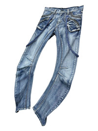 🔥FYE🔥90’s PPFM Punk Curve Leg Custom Performance Jeans 💥CUSTOM REMOVABLE SUSPENDER💥 ➤ BRAND NAME : PPFM CONDITION : (USED : 8/10) MATERIAL : Denim ......…................................................................ ➤ SIZE MANUAL MEASUREMENT / LAID FLAT (INCHES) WAIST : 15.5“(W31") (SIZE ON TAG : M) LENGTH ; *Outseam : 47" *Inseam : 31.5" .......….............................................................. ➤✈️WORLDWIDE EXPRESS SHIPPING ✈️ DHL / FedEx (ETA) 5~8 Days Worldwide (From Asia) ありがとうございました(Thank You) ~ rOAdRunNeR cOlleCtioN ~