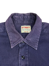 Archival Stüssy Blue Tag Authentic Gear work shirt Rare 90s/early 00s era piece with crown tag + side woven tab. • Made in USA • Blue tag era - authentic vintage piece • Beautiful sun-faded navy tone • Double chest pockets, 100% cotton • Timeless streetwear staple Perfect for Stussy collectors or 90s archive lovers Size (Tag M): • Pit to Pit: 23" • Length: 28.5" Fits true to size Condition: Great vintage condition - no major flaws Shipping & Returns: • Ships via FedEx Express Worldwide (ETA 5-8 business days from Asia) • Buyer responsible for customs/ import fees • No returns - please check measurements carefully ありがとうございました (Thank you!) ~ rOAdRunNeR cOlleCtioN ~
