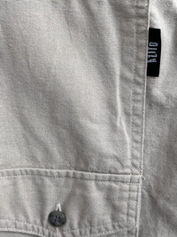 Vintage Azito daily workwear overshirt in stone beige. Features a unique "Double Knee" Carhartt-inspired design pocket on the chest — a nod to classic workwear aesthetics. Built with durable cotton, oversized chest pockets, and a relaxed silhouette for both function and streetwear edge. Details: • Brand: Azito • Size: Fits M-L (check measurements) • Material: Heavyweight cotton • Color: Stone beige • Chest pockets - one flap pocket with double-layer workwear styling • Button front, straight hem Condition: • Great vintage condition • No major flaws A rare mix of workwear function and streetwear form - perfect layering piece.