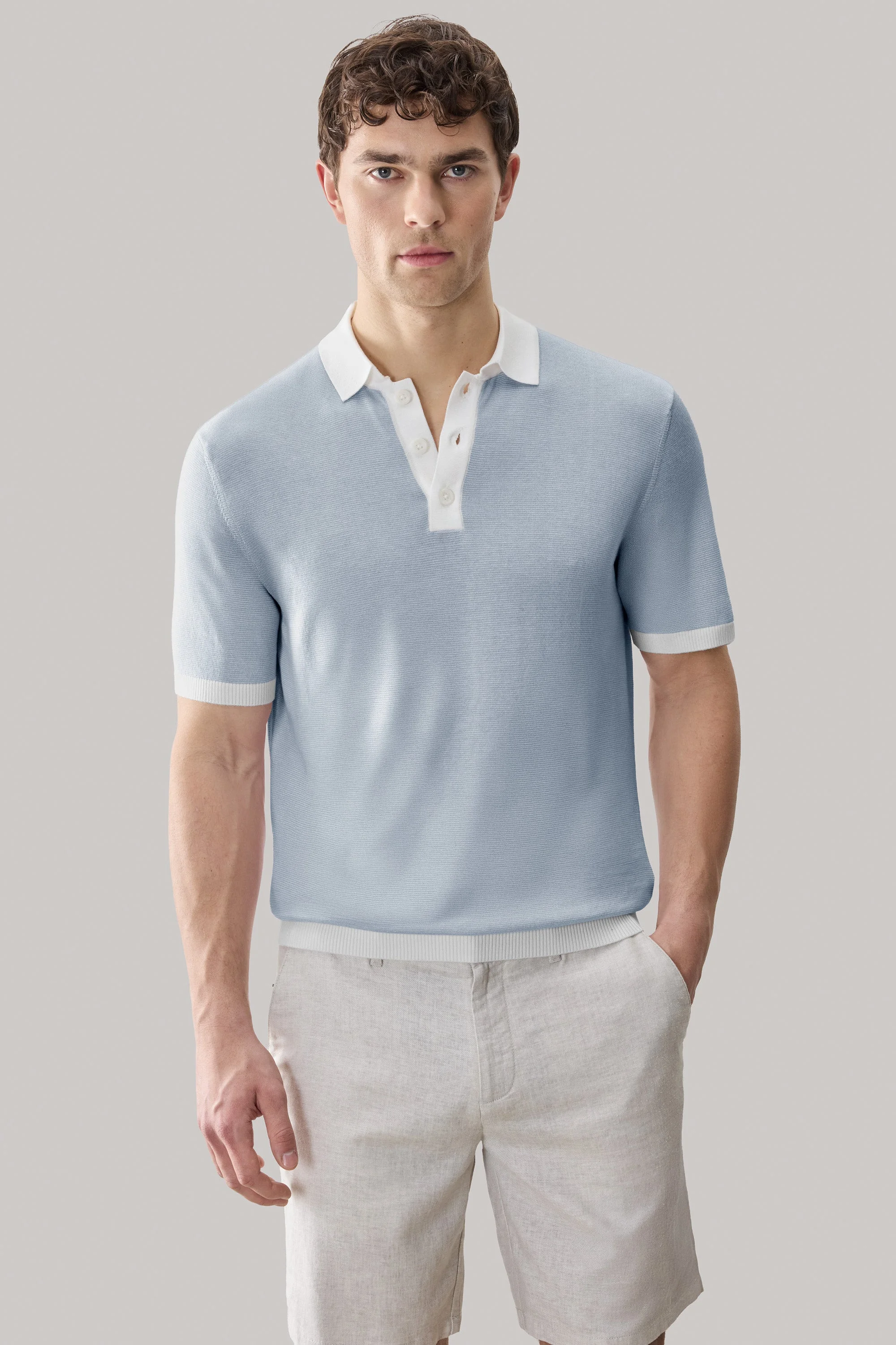 This classic 3-button polo is crafted from a fine cotton-gauge knit, offering a lightweight and luxurious feel. Contrast details at the collar, cuffs, and hem add a refined touch to a timeless design. Features - Classic 3 button polo style - Fine cotton gauge knit for lightweight and luxurious feeling - Contrast Collar cuffs and hem