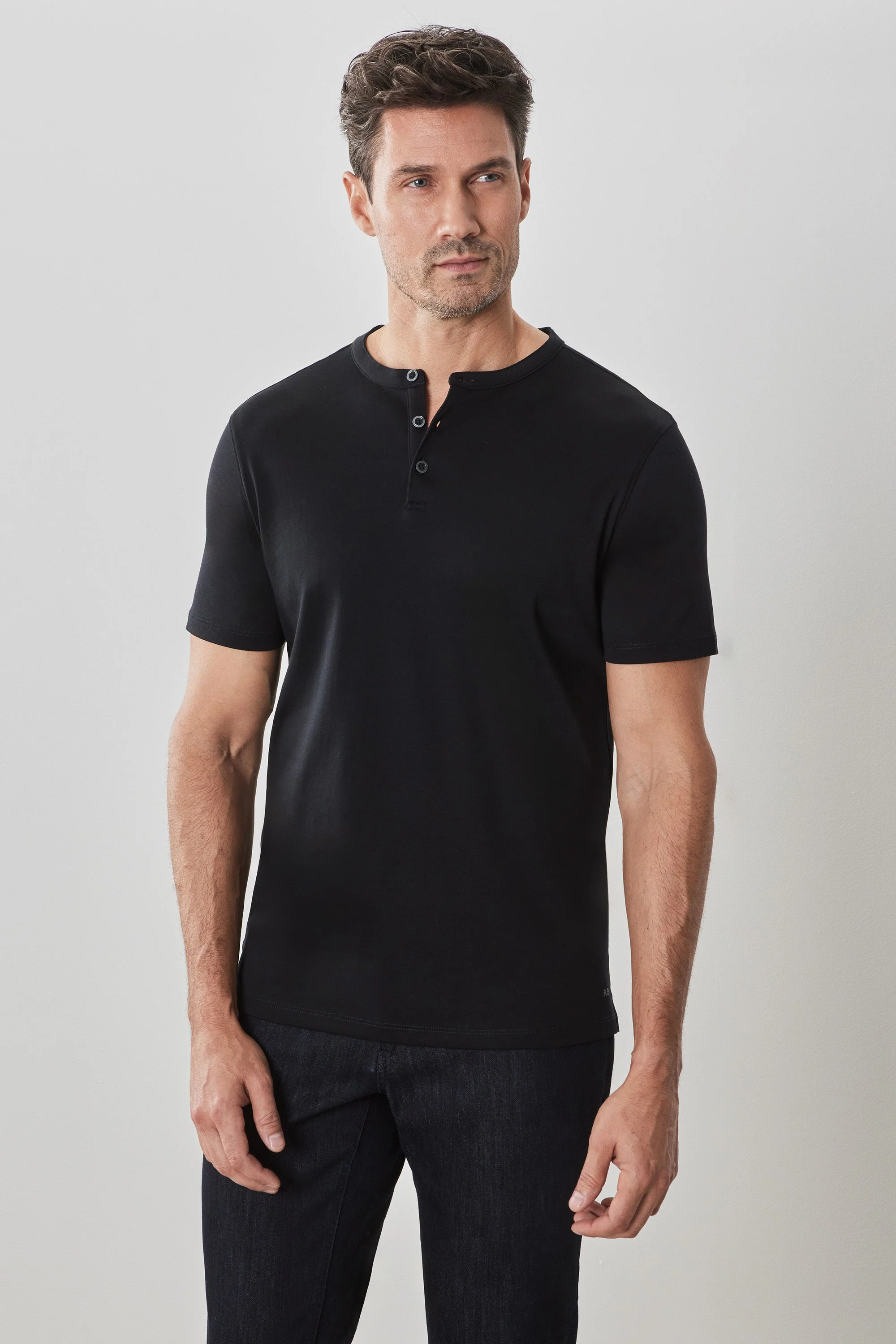 A new addition to the Barakett Essential Collection, the Barakett Henley features our signature Pima cotton fabric in a contemporary silhouette. Incredibly comfortable and stylish, the short sleeve Henley features a subtle, contrasting jacquard bottom placket to elevate the look. Features - 100% Pima Cotton - Short-Sleeve Henley T-Shirt - Cotton Interlock