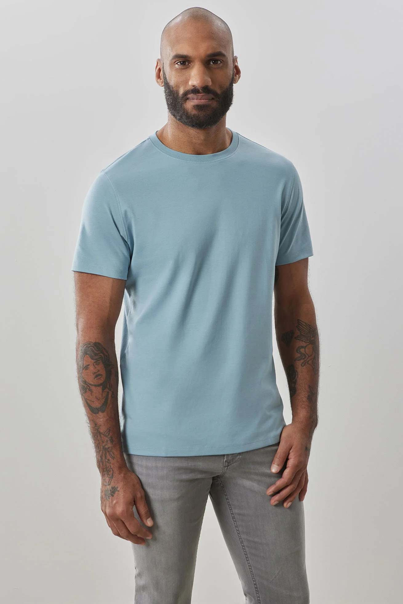 It doesn't get more iconic than a T-shirt, and it doesn't get better than The Barakett Tee! Also known as the Georgia Crew, our signature T-shirt is made with our exclusive USA-grown Pima Cotton and uses Soft Water finishing to create the ultimate in comfort, luxurious hand feel, and clean appearance. The best dressy T-shirt, it's great on its own or as a universal layering piece. Features