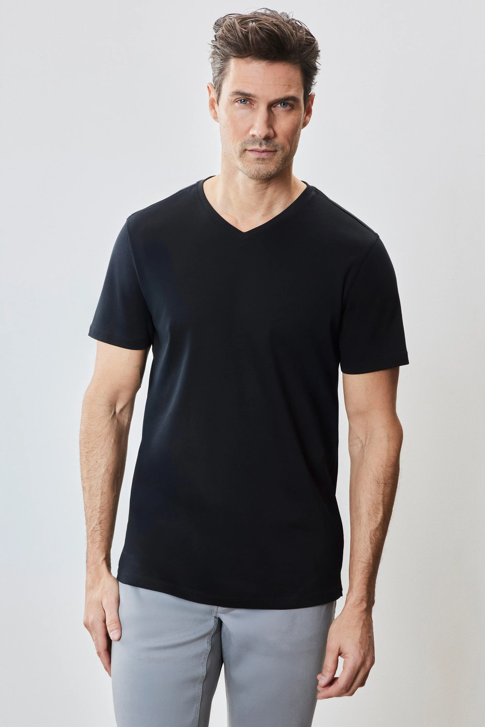 Also known as the Georgia V-neck T-shirt. It is the equally comfortable and stylish brother of The Barakett Tee. Made with our signature Pima cotton fabric with Soft Water finishing, it's the ultimate in comfort, luxurious hand feel, and clean appearance. A versatile piece in any man's wardrobe; elevate any look with the most comfortable V-neck ever. Features - 100% USA grown Pima cotton - Long-lasting color retention - Shape retention engineering
