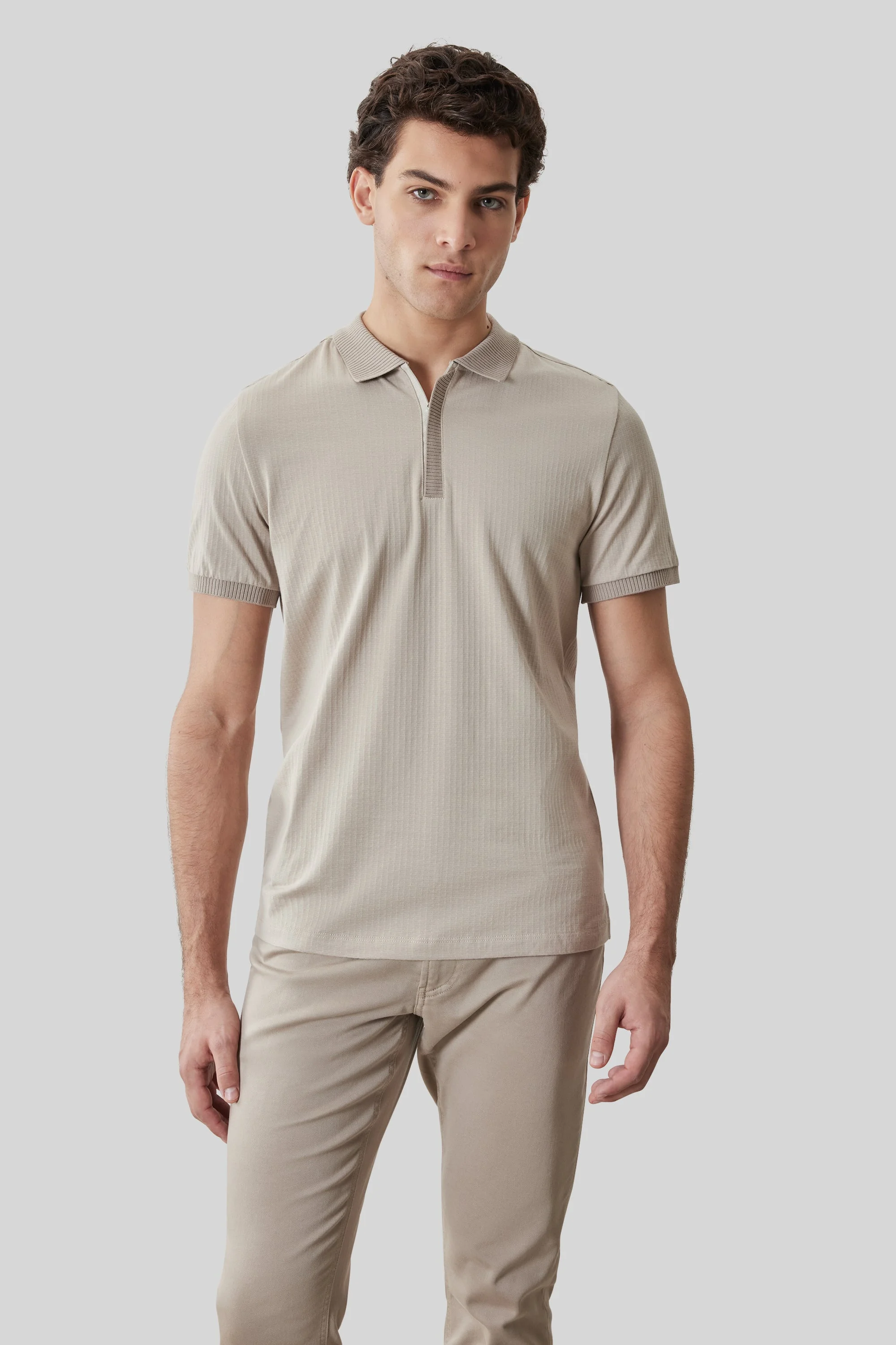 This polo is made from a soft, comfortable cotton knit, offering both style and ease. Featuring a hidden placket with zipper closure and a textured knit collar, the jacquard knit fabric allows it to transition seamlessly from dressed-up occasions to casual everyday wear. Features - Comfortable cotton knit fabric - Hidden placket Polo with Textured knit collar and Zipper closure - Dobby Knit fabric can be dressed up or more casual