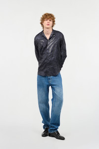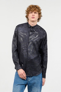 ID: URT716-4QN55-Z0577 This long-sleeved shirt, an authentic menswear must-have, is interpreted by Roberto Cavalli in a pure silk version embellished with a refined all-over animal print, an unmistakable tribute to the brand's style. Details - Pure silk shirt - Animal print - Long sleeves - Cuffs with buttons - Classic collar - Concealed front fastening with exposed top button Care & maintenance External fabric:100% Silk