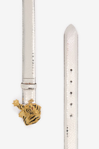 ID: TKC002-PZ579-00106 Details - Belt with Snake Print and Jewel Tiger Detail - Silver - Female - Made in Italy Care & maintenance Leather - Fur:Aegagrus Hircus / Lining:100% Bos Taurus
