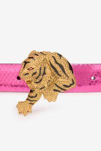 ID: TKC002-PZ579-D2385 Details - Belt with Snake Print and Jewel Tiger Detail - Fuchsia - Female - Made in Italy Care & maintenance Leather - Fur:Aegagrus Hircus / Lining:100% Bos Taurus