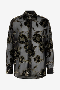Black and Gold See-Through Shirt with Floral Pattern