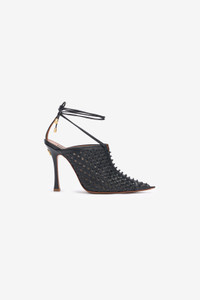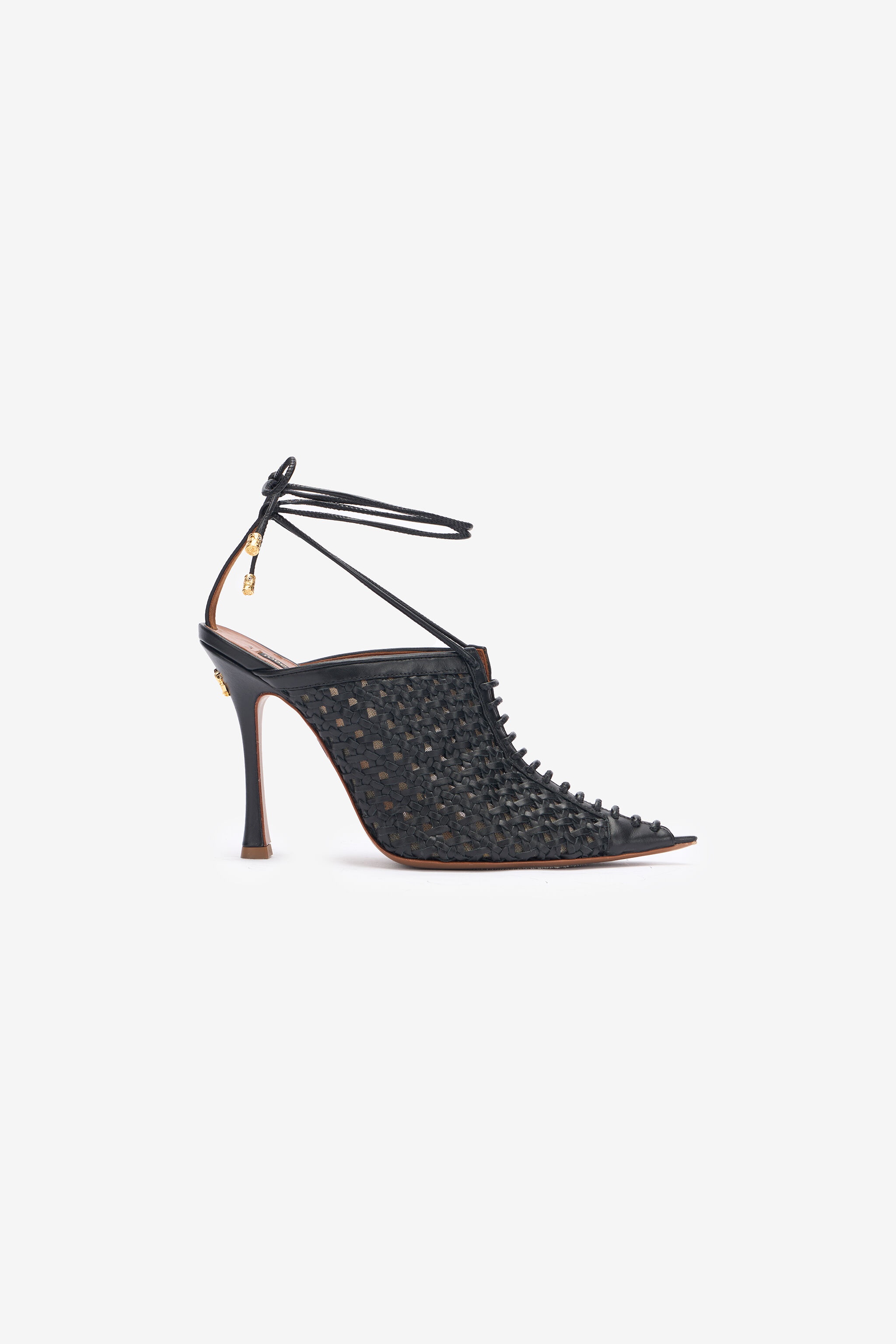 ID: UWS008-PZE16-05051 An embodiment of artisanal refinement, these sabot heels feature a finely woven upper evoking precious textures. The sleek design with a stiletto heel and ankle strap offers sophisticated elegance, while the luxurious leather lining ensures comfort with every step. A masterpiece of Italian design and craftsmanship. Details - Woven upper in viscose and cotton blend - Sabot design with a peep toe - Elegant adjustable ankle strap with gold-tone details - Slender stiletto heel - Perfect for evening events, ceremonies, or elevating a daytime look - Made in: Italy Care & maintenance Lining:100% Capra hircus linneaus / Outer sole:100% Bos Taurus / Upper:75% Viscose / Rayon, 25% Cotton