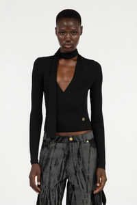 ID: VWM603-MH014-05051 This long-sleeve sweater by Roberto Cavalli embodies effortless, contemporary luxury. The wrap-over design of the model creates a deep V-neckline topped with an elegant lavalliere to be wrapped around the neck, while the refined rib-knit adds an extra touch of comfort to the garment. The garment is enhanced at the front with the iconic RC Monogram in gold-tone metal, applied at the hem. Details - Long-sleeved sweater - Wrap-over design - Plunging V-neck - Matching lavalliere - Rib knit - Metal RC Monogram on the hem - Branded label inside the collar - Made in Italy Care & maintenance External fabric:100% Viscose / Rayon