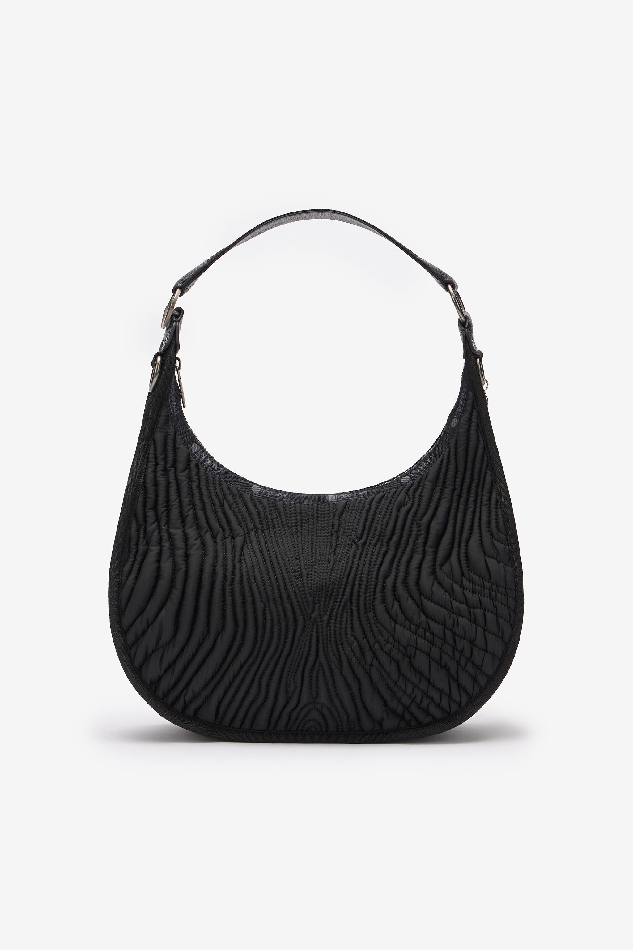 ID: ULL002-IL002-E0468 A sophisticated Black Matelasse Bologna Medium bag featuring a ruched texture and a sleek curved silhouette. The zippered closure secures essentials, while the adjustable strap provides versatile carrying options. Purchase this timeless bag today for a refined and stylish addition to your collection. Details - A collaboration between Roberto Cavalli and LeSportSac - 8.5H x 13W x 4.25D in, 21.6H x 33W x 10.8D cm Care & maintenance External fabric:100% Polybutylene terephthalate / Secondary fabric:100% Polyurethane / Lining:100% Polyester