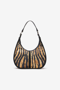 ID: ULL004-IL004-E0470 A statement-making Bologna Medium Freedom Rum bag with a striking tiger-stripe print and sleek curved shape. The zippered closure keeps essentials secure, while the adjustable strap offers multiple carrying options. Purchase this bold bag today for a standout addition to your wardrobe. Details - A collaboration between Roberto Cavalli and LeSportSac - 8.5H x 13W x 4.25D in, 21.6H x 33W x 10.8D cm Care & maintenance External fabric:100% Polyester / Secondary fabric:100% Polyurethane / Lining:100% Polyester