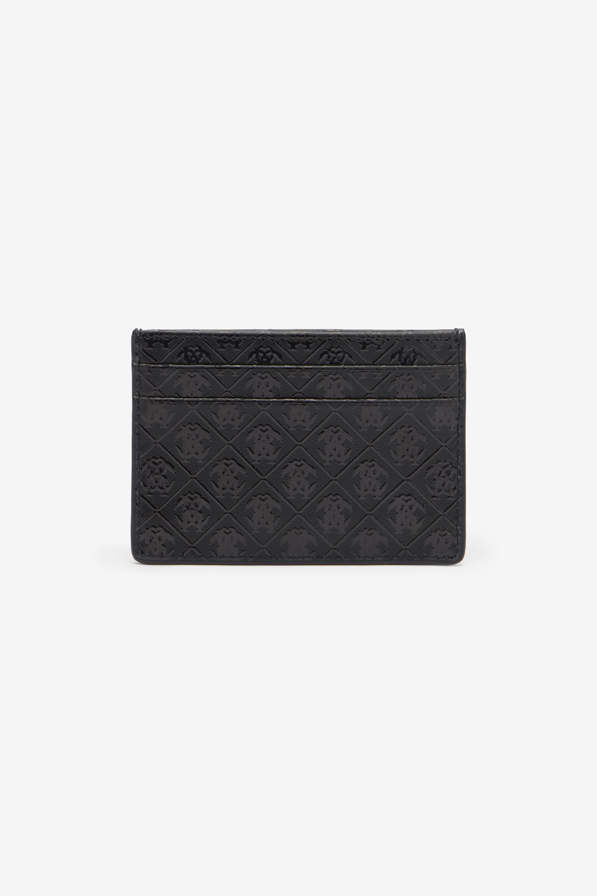 ID: VRA009-PZS76-05051 The Mirror Snake Monogram, one of the most recognizable symbols of the Roberto Cavalli aesthetic, comes alive in the form of a refined monochrome motif with a shiny effect on the outer surface of this card holder with a top opening and card and document compartments on both sides. Details - Rectangular shape card holder - Pattern with shiny-effect Mirror Snake Monogram on the outer side - Flat design - Top opening - Card and document slots on front and back