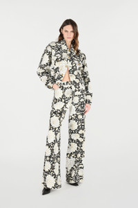 ID: VQJ420-DAP71-D0477 An expression of casual and contemporary luxury, this stretch cotton denim jacket by Roberto Cavalli is animated by a refined all-over contrasting floral pattern. The garment is completed with two breast pockets with flap and button, two convenient side pockets and a front fastening with buttons. Details - Stretch cotton denim jacket - Long sleeves - Branded button on cuffs - All-over flower print - Pointed collar - Two flap breast pockets with branded button - Two side pockets - Front branded button fastening - Roberto Cavalli label on the inside collar - Made in Italy