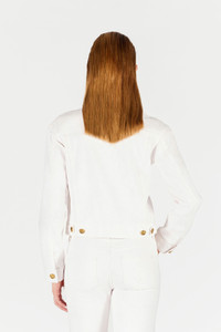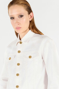 ID: UWJ425-DE007-00052 This white denim jacket is a versatile and timeless piece. The gold buttons add a touch of luxury. The model is 178 cm tall and wears a size S. Details - Front button closure - Front patch pockets - Regular fit - Made in: Italy - Perfect for a casual chic look or for a more elegant outfit combined with a skirt - Ideal to wear with jeans or trousers of different colors