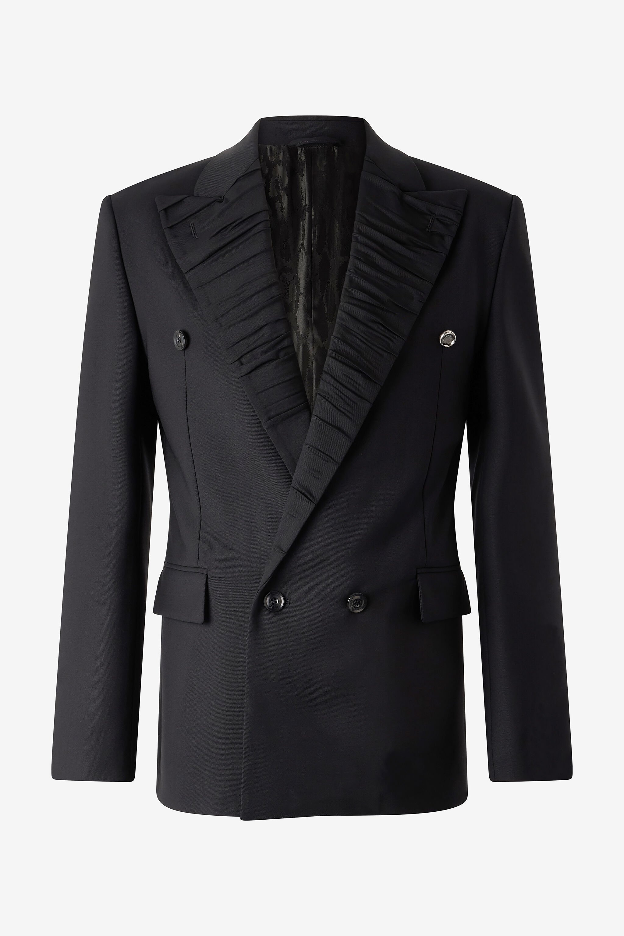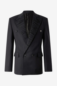 ID: URT420-WP066-05051 Add a touch of luxury to your wardrobe with this double-breasted stretch wool blazer from Roberto Cavalli, featuring comfortable front flap pockets, refined side slits and peak lapels with a draped texture. The garment is completed by details that recall the animal world, which has always been a source of inspiration for the brand, such as the lining with the solid-color Jaguar Skin print and the branded metal buttons finished by the twisted snake on the cuffs and front fastening. Details - Double-breasted stretch wool blazer - Lining with solid-color Jaguar Skin print - Peak lapels with draping - Inner hanger loop - Long sleeves - Two flap pockets on the sides - Cuffs with buttons - Metal button with snake on the cuffs and front - Side slits Care & maintenance External fabric:95% Virgin wool, 5% Elastane / Secondary fabric:50% Wool, 50% Viscose / Rayon / Lining:100% Viscose / Rayon