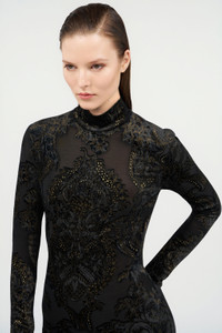 ID: WKT154-6CR36-05051 A dress that channels sophistication through intricate design and embroidered detailing. The figure-hugging silhouette is paired with a refined texture, striking a balance between elegance and modernity. A piece that embodies the power and iconic character of the brand, perfect for those seeking the finest in contemporary luxury. Details - Sophisticated Ornamental Black print - Embracing, feminine silhouette - Intricate and refined details - Perfect for special and elegant occasions