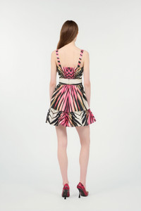 ID: VKT106-RLM33-02500 This pure cotton dress by Roberto Cavalli is ready to add a touch of luxury to any outfit thanks to the iconic Ray of Pink print that extends over the entire surface and the refined pleated design that ends with a flounce at the hem of the skirt. Details - Pure cotton dress - All-over Ray of Pink print - Small Roberto Cavalli signatures on the surface - Straight neckline with shoulder straps - Pleated design - Waistband - Skirt with flounce Care & maintenance External fabric:100% Cotton