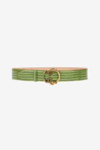 ID: WKC001-PZ119-05522 A bold statement of iconic Roberto Cavalli style, this belt captivates with its vibrant green hue and textured reptile-effect leather. The true centerpiece is the sculptural, antique-gold finish buckle, where two sinuous snakes intertwine in an emblematic design. Cinch it over a dress or tailored trousers to infuse any look with a touch of untamed allure and sophisticated craftsmanship. Details - Adjustable design for a personalized fit. - Crafted from high-quality leather with a tactile reptile-effect finish. - Embellished with an antique gold-tone buckle in the shape of intertwined snakes. - The perfect accessory to define the waist of dresses, coats, or blazers. - Pair with neutral tones to let the vibrant green color stand out. - Made in Italy. Care & maintenance Leather - Fur:Bos Taurus / Lining:100% Bos Taurus