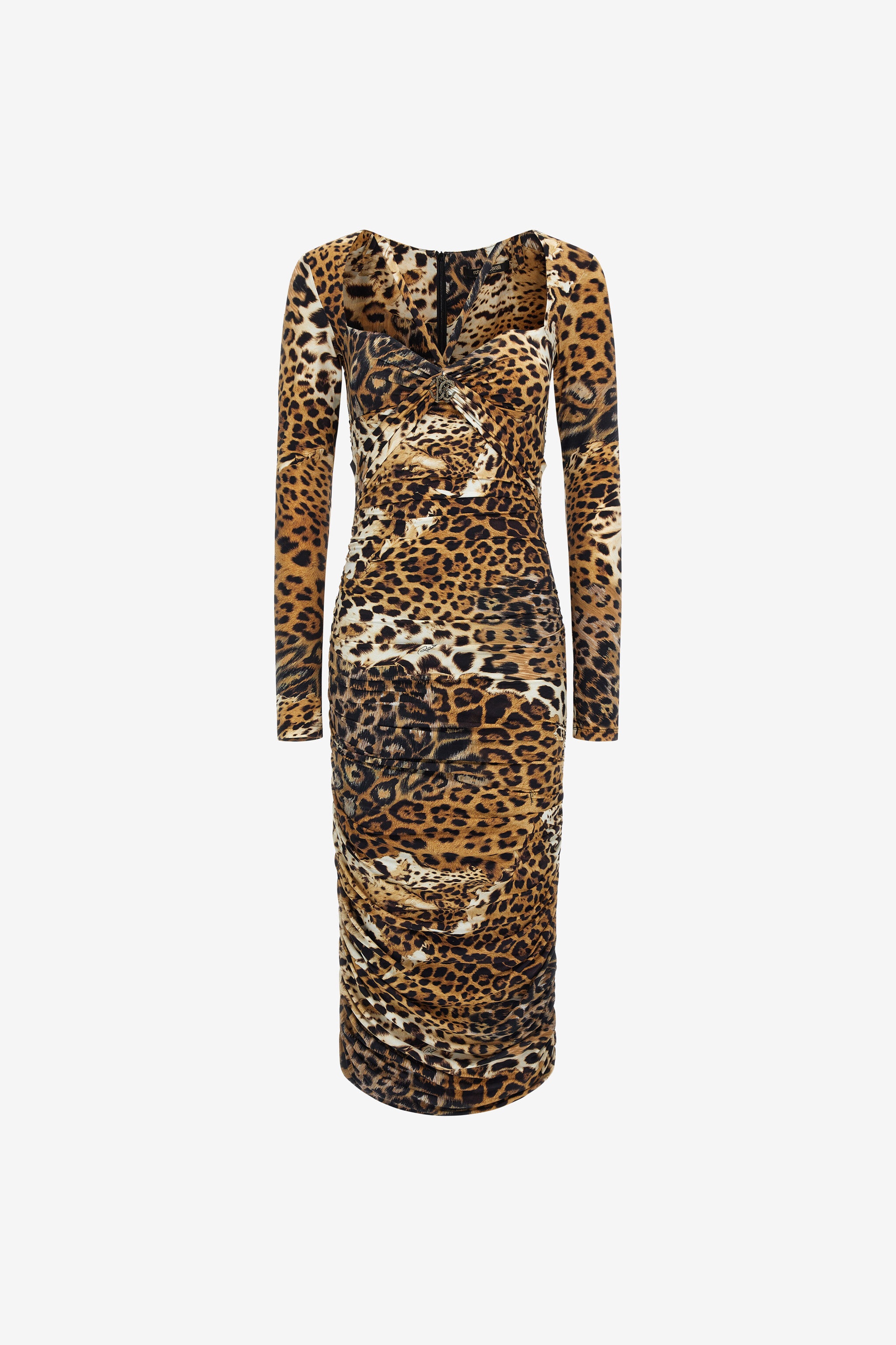 ID: SKT171-LNG34-00504 Details - Jaguar Skin print dress - Light Brown - Female - Made in Italy Care & maintenance External fabric:86% Polyamide, 14% Elastane / Lining:88% Polyamide, 12% Elastane