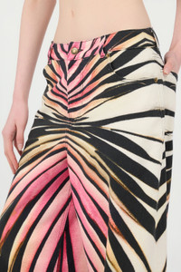 ID: VKJ207-DAM33-02500 These palazzo jeans in stretch cotton denim by Roberto Cavalli are ready to add a touch of luxury to your everyday outfits, thanks to the warm and hypnotic Ray of Pink print that stands out on the entire surface. Details - Stretch cotton denim jeans - Palazzo cut - Lined model - All-over Ray of Pink print - Five-pocket design - Belt loops Care & maintenance External fabric:98% Cotton, 2% Elastane / Lining:65% Polyester, 35% Cotton