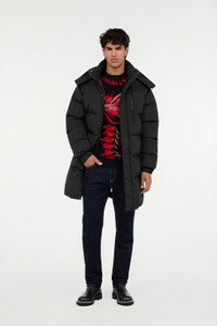 ID: ROT80F-FY035-05051 Embrace the warm elegance of this long down jacket by Roberto Cavalli, featuring a clean and versatile design. The piece is distinguished by a detachable hood with a zipper and two buttons for front closure, and it is complemented by three convenient hidden zip pockets: one on the chest and two on the sides. Details - Long quilted down jacket - Long sleeves - High collar - Detachable hood with zipper and snap buttons for front closure - One vertical chest pocket with concealed zipper - Two side pockets with concealed zippers - Elasticated cuffs - Drawstring adjustment at the hem - Concealed closure