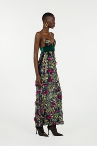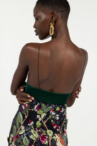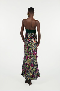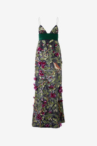 ID: VWR117-RT011-D0141 Roberto Cavalli elegance finds its maximum expression in this beautiful long dress, featuring an embroidered motif inspired by the natural world, consisting of beads, sequins and soft fabric flowers. The velvet band under the bust accentuates the waist, while the deep neckline and open back add a touch of refined sensuality to the piece. Details - Long dress with sequins and beads - Natural pattern with branches, leaves, flowers and birds - All-over fabric flowers - Plunging V-neck - Sleeveless design with spaghetti straps - Velvet band under the bust - Side zipper fastening Care & maintenance External fabric:100% Polyester / Secondary fabric:100% Silk / Lining:100% Silk / Embroidery - Decoration:39% Silk, 29% Glass fibre, 25% Polyvinyl chloride, 7% Polyester
