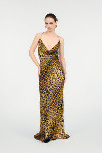 Long Silk Dress With Jaguar Skin Print