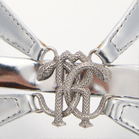 ID: UKS008-PZ048-D2784 These slider-style flat sandals feature a minimal and elegant design, embellished with shiny laminated leather straps that converge in a refined bow, enhanced by the Mirror Snake Monogram, a symbol of the brand’s DNA. The model with a square toe is further refined by the Roberto Cavalli signature on the insole. Details - Slider-style sandals - Square toe design - Laminated leather straps with bow detail and Mirror Snake Monogram - Leather-lined insole with Roberto Cavalli signature - Leather sole - Low heels Care & maintenance Lining:100% Bos Taurus / Outer sole:100% Bos Taurus / Upper:100% Bos Taurus
