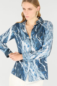 ID: UKT704-4QN22-04964 An expression of an elegant style that is never predictable, this pure silk shirt with a minimalist design is enhanced by a refined marbled-effect print, a distinctive element in the Roberto Cavalli universe. Details - Marble-print silk shirt - Classic collar - Concealed front fastening with exposed top button - Roberto Cavalli label on the inside collar Care & maintenance External fabric:100% Silk