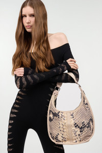 ID: ULL004-IL016-E0508 The refined medium-sized Bologna bag features a sophisticated curved hobo-inspired silhouette and an eye-catching print that extends over the entire surface and features some small details with the Roberto Cavalli signature. The accessory, finished with a customized top front trim and the iconic tiger Fang charm, is equipped with a convenient zip fastening, perfect for storing your belongings, and can be worn on the shoulder or crossbody thanks to the adjustable and removable shoulder strap. Details - Hobo-style bag with all-over print and small Roberto Cavalli signatures - Medium size - Top front trim with LeSportsac logo - Top handle - Tiger Fang charm attached to the handle - Adjustable tape shoulder strap that can be removed with the clasps - Can be carried over the shoulder and crossbody - Top fastening with zipper - Double inner wall pocket, one of which has a zip - Lined interior - Dimensions (H x W x D): 21.6 x 33 x 10.8 cm / 8.5 x 13 x 4.25 inches - The model is part of a collaboration between Roberto Cavalli and LeSportsac Care & maintenance External fabric:100% Polyester / Secondary fabric:100% Polyurethane / Lining:100% Polyester