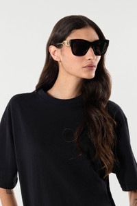 ID: UALD14-ID209-D9900 Wide feminine shape of the front. Acetate front combined with metal temples. The decor of the temples is inspired by the belt buckle Details - Sunglasses Roberto Cavalli - Mirror snake collection - Buckle desing temple - Made in italy - Lenses 52mm Bridge 21mm Temples 125mm - ID: SRC1305201AY - ID: SRC1305201AY Care & maintenance Composition:Acetato, Polyester, Stainless Steel