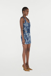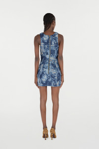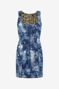 ID: VKJ150-VT012-04564 This sleeveless mini dress by Roberto Cavalli stands out for its fitted cut and the captivating mottled effect created by discoloration and abrasions. The wild spirit of the animal universe, which has always been a source of inspiration for the Maison, is expressed here by an inner lining with Jaguar Skin print complete with the Roberto Cavalli label. The style, made of cotton-blend denim, is also defined by a zip on the back and a square neckline complete with criss-cross lacing with tassel-finished ends. The fitted design highlights the silhouette, while the animal print gives a bold touch to your daytime or evening looks. Details - Cotton-blend denim mini dress - Discoloration and abrasions for an all-over mottled effect - Square neckline with lacing and tassels - Lining with Jaguar Skin print - Roberto Cavalli label on the interior - Back zipper fastening - Sleeveless design - Made in Italy