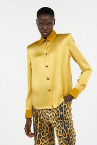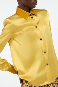 Ochre Silk Shirt With Velvet Inserts