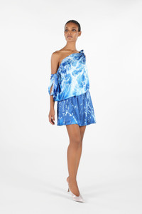 ID: UWT127-RYN94-04927 The One-Shoulder Stretto di Messina Dress is an ode to the beauty of the Italian seas. The exclusive print captures the essence of the waves, transforming a garment into a wearable work of art. Perfect for those who want a sophisticated and distinctive look. The model is 178 cm tall and wears size S / 40. Details - One-shoulder design with knot detail on the shoulder - Exclusive Stretto di Messina print - Elasticated waistband for a comfortable fit - Made in: Italy - Ideal for special events, elegant evenings or a cocktail party - Fluid and feminine silhouette Care & maintenance External fabric:100% Silk