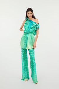 ID: UKT209-RYN47-04000 Let yourself be won over by the magnetic allure of the Optical Glass print, which extends over the entire surface of these fluid pure silk pants with a slightly flared hem from Roberto Cavalli. The style is complemented by an adjustable drawstring on the waist embellished by metal aglets in the shape of the iconic tiger Fang. Details - Pure silk pants - All-over Optical Glass print - Fluid design with slightly flared hems - Drawstring with metallic Fang-shaped aglets - High-rise Care & maintenance External fabric:100% Silk