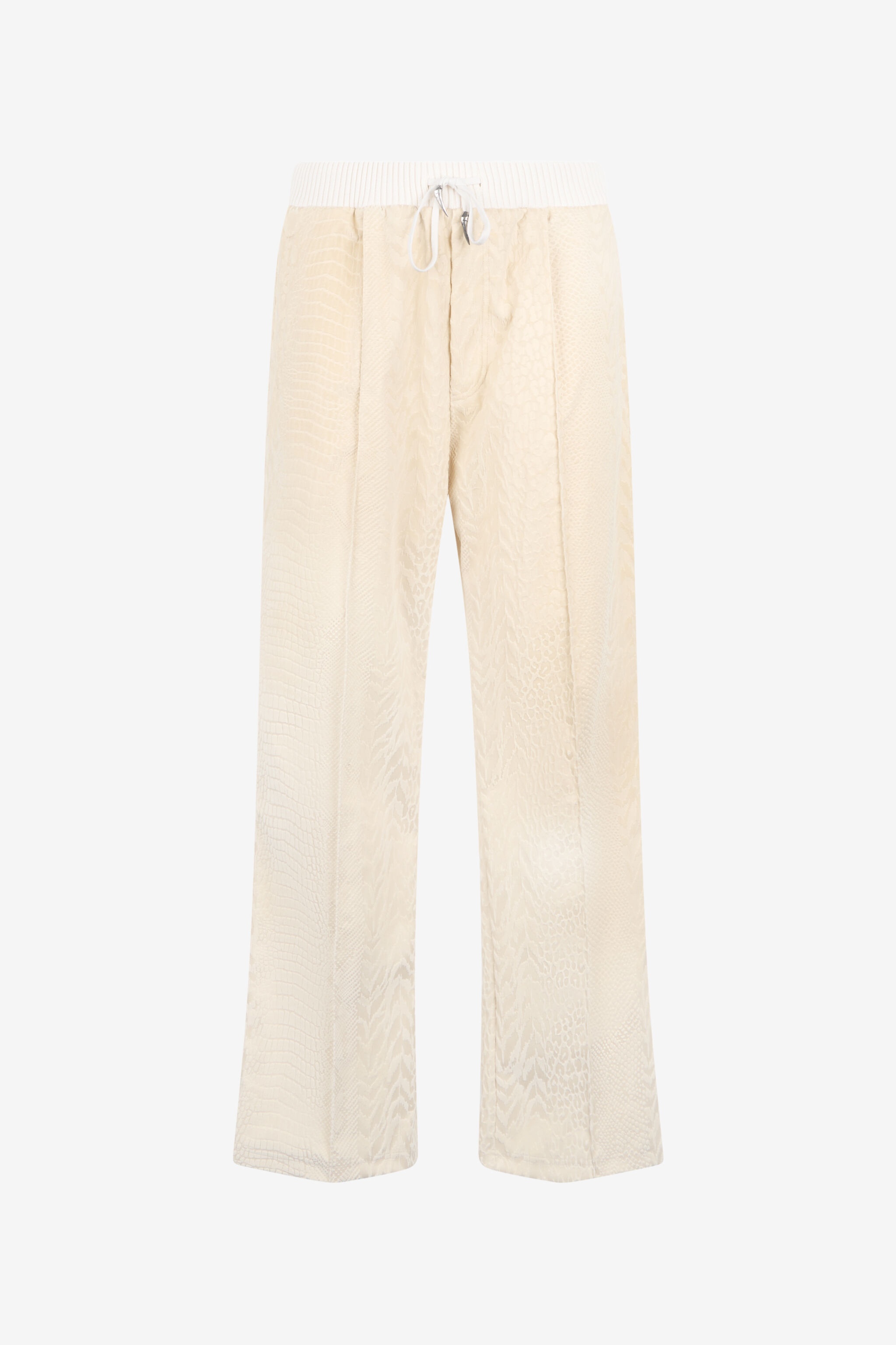 ID: URT25Y-CJ007-00551 Details - Trousers made of pure cotton - Alternating tone-on-tone Python, Jaguar Skin, and Tiger Skin patterns - Front pleat - Ribbed waistband - Drawstring waist with Fang-shaped metal tips Care & maintenance External fabric:100% Cotton / Lining:100% Cotton