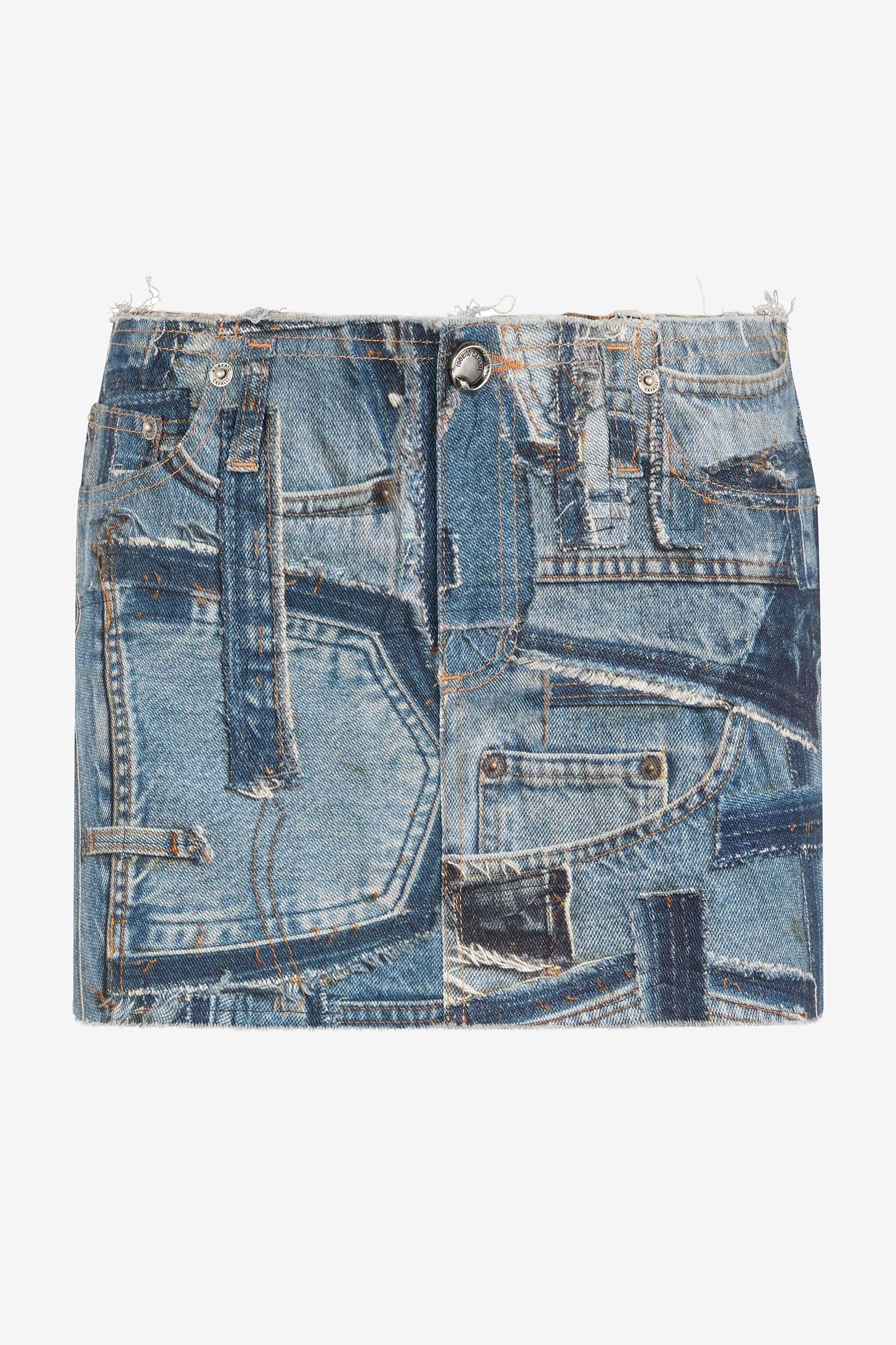 ID: UWJ350-DS001-04564 This denim mini skirt in stretch cotton by Roberto Cavalli is a perfect combination of creative luxury and urban style. The model features a five-pocket construction and raw-cut hems, and is characterized by an unprecedented patchwork given by the combination of inserts with different shades and finishes that recall the typical details of jeans. Details - Cotton stretch denim mini skirt - Cotton lining - Patchwork inserts - Five-pocket design - Raw edges - Belt loops - Salpa logo on the back Care & maintenance External fabric:98% Cotton, 2% Elastane / Lining:100% Cotton