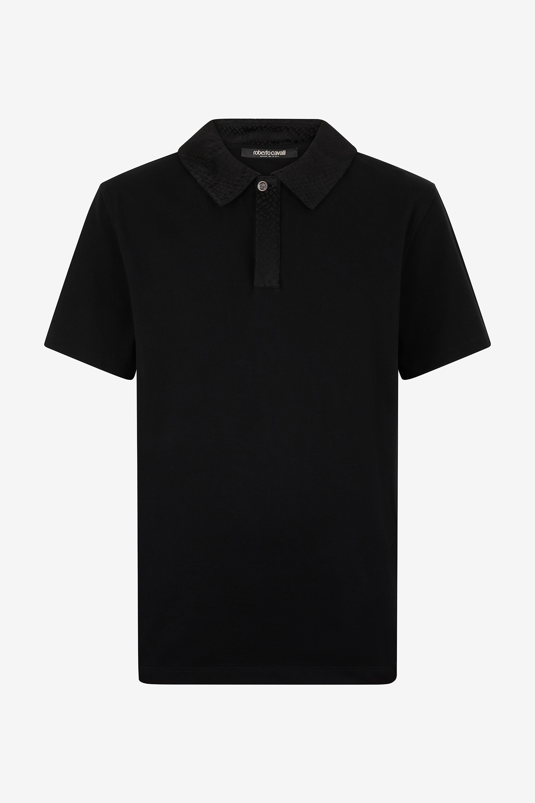 ID: URT64G-KB002-05051 The minimalist design of this short-sleeved pure cotton polo is taken to new levels by Roberto Cavalli’s unmistakable animal print, here embodied by the collar and placket that are decorated with a refined solid-color embroidered design that reproduces snake scales. The model is also finished with the first visible button with the emblematic Mirror Snake Monogram, another tribute to the brand’s DNA. Details - Pure cotton polo-shirt - Snake scale embroidery on collar and placket - Short sleeves - Placket with hidden buttons and first visible button with Mirror Snake Monogram - Roberto Cavalli label on the inside collar - Made in Italy Care & maintenance External fabric:100% Cotton