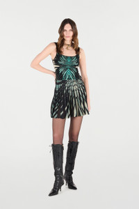 ID: VKM303-MI150-04505 Capture the gaze with the Ray of Sea mini skirt, a piece that evokes the changing reflections of the sea at sunset. The vibrant print, enhanced by the pleated workmanship, creates a dynamic play of light and shadow with every movement. A bold and sophisticated design, perfect for expressing contemporary and decisive femininity. The model is 178cm / 5'10" tall and wears size S / 40 IT. Details - Mini skirt with a flared silhouette - Fully pleated design - Exclusive Ray of Sea print - Elasticated high waist - Ideal for cocktail parties or special evenings - Pair with a fitted top and high heels for an impactful look - Made in Italy