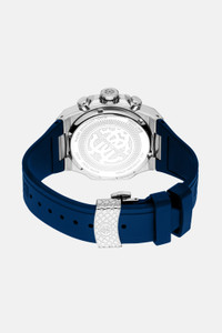 ID: UALT07-IT536-E0489 This bold 45mm Roberto Cavalli by Franck Muller men’s watch features a distinctive octagonal stainless steel case with 8 visible screws, showcasing an eye-catching design. The dark blue dial includes 3 hands, a date display, and 3 counters, adding both style and functionality. Complemented by a matching dark blue rubber strap, it offers a secure and comfortable fit with a butterfly buckle fastening. A striking blend of precision, durability, and contemporary design. Details - Roberto Cavalli by Franck Muller Men watch - 45 mm stainless steel case - Dark blue color dial - Dark blue rubber strap - Strap with butterfly buckle fastening - Chronograph with 3 hands and date - Functions: hours, minutes, seconds, date, chronograph - Quartz watch with Ronda 3540.D Swiss movement - Water-resistant up to 100m (10 ATM) - 2 years international warranty excluding battery and wear to the case and strap or bracelet