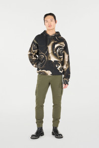 ID: URT69B-5ON48-D0146 An all-over vintage-effect photographic print with roses decorates this hoodie by Roberto Cavalli, where the roaring touch is created by the metal aglets in the shape of the iconic tiger Fang. A go-to garment ready to add a touch of retro elegance to your everyday looks. Details - Cotton hoodie - Photographic print with vintage roses - Drawstring with metallic Fang-shaped aglets - Long sleeves - Front pouch pocket - Roberto Cavalli label on the inside collar Care & maintenance External fabric:100% Cotton
