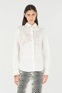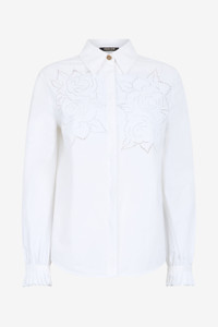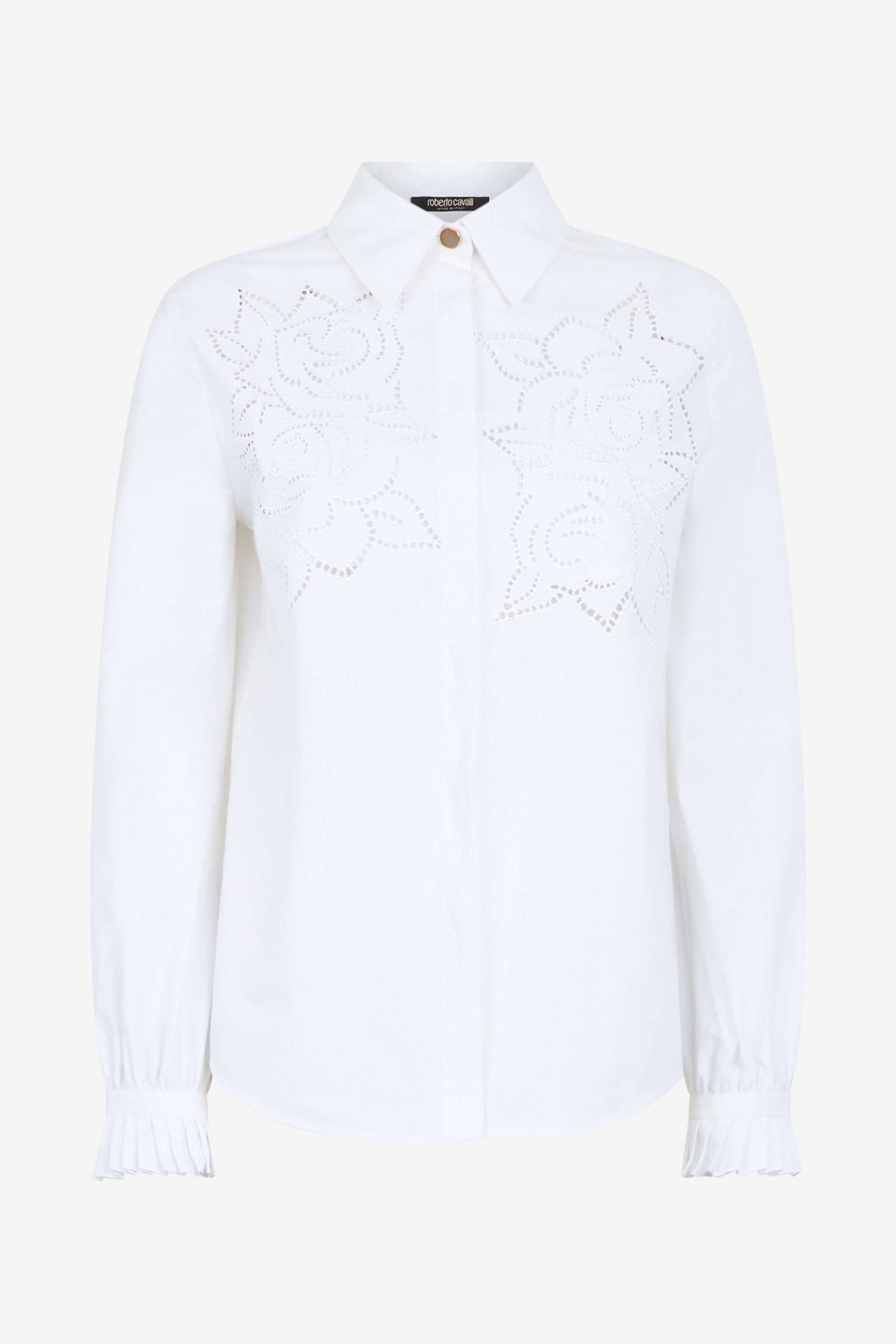 ID: UKR708-CH033-00052 This cool pure cotton shirt by Roberto Cavalli is embellished with an openwork rose motif on the top, while the cuffs are finished with an elegant pleated design. Details - Pure cotton shirt - Openwork rose pattern - Long sleeves - Classic collar - Cuffs with pleated design - Concealed front fastening with exposed top button - Rounded hem - Roberto Cavalli label on the inside collar - Made in Italy Care & maintenance External fabric:100% Cotton