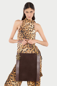 ID: VKB005-PC219-01660 The perfect combination of elegance and functionality, this shoulder bag by Roberto Cavalli will bring a touch of luxury to your everyday looks. The style, characterized by a spacious silhouette that extends vertically, plays on the contrast of textures created by the smooth side panels and the central panels with a suede effect. The accessory is complete with a convenient top handle and is enriched by a chain with thick links, embellished with a charm with the iconic Mirror Snake Monogram, which lends itself both to falling on the front in the form of a decorative element, and to being used as a second handle. Details - Large shoulder bag - Spacious design - Vertical rectangular design - Smooth-textured side panels - Central panel with suede texture - Top handle - Decorative chain to be used as a handle - Charm with Mirror Snake Monogram - Top opening - Contrasting animal print lining