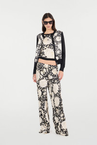 ID: VQM909-MQ002-D0477 Add a touch of luxury to your everyday wardrobe with this silk-blend cardigan by Roberto Cavalli featuring a refined floral print on the front. The garment also features an elegant hidden front fastening, and is embellished with a golden applique on the back in the shape of the iconic Mirror Snake Monogram. Details - Silk-blend cardigan - Long sleeves - Crew-neck - Floral print on the front - Rib-knit neck, cuffs and hem - Golden applique with Mirror Snake Monogram on the back - Front fastening with concealed buttons - Roberto Cavalli label on the inside collar - Made in Italy